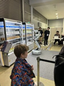 今回初めて、来場客に渡す飲み物をAIロボットで渡すことをしていましたが、ロボットがフリーズ、懸命の復旧作業にもかかわらずなかなか治らず、飲み物に並ぶ長蛇ができました。